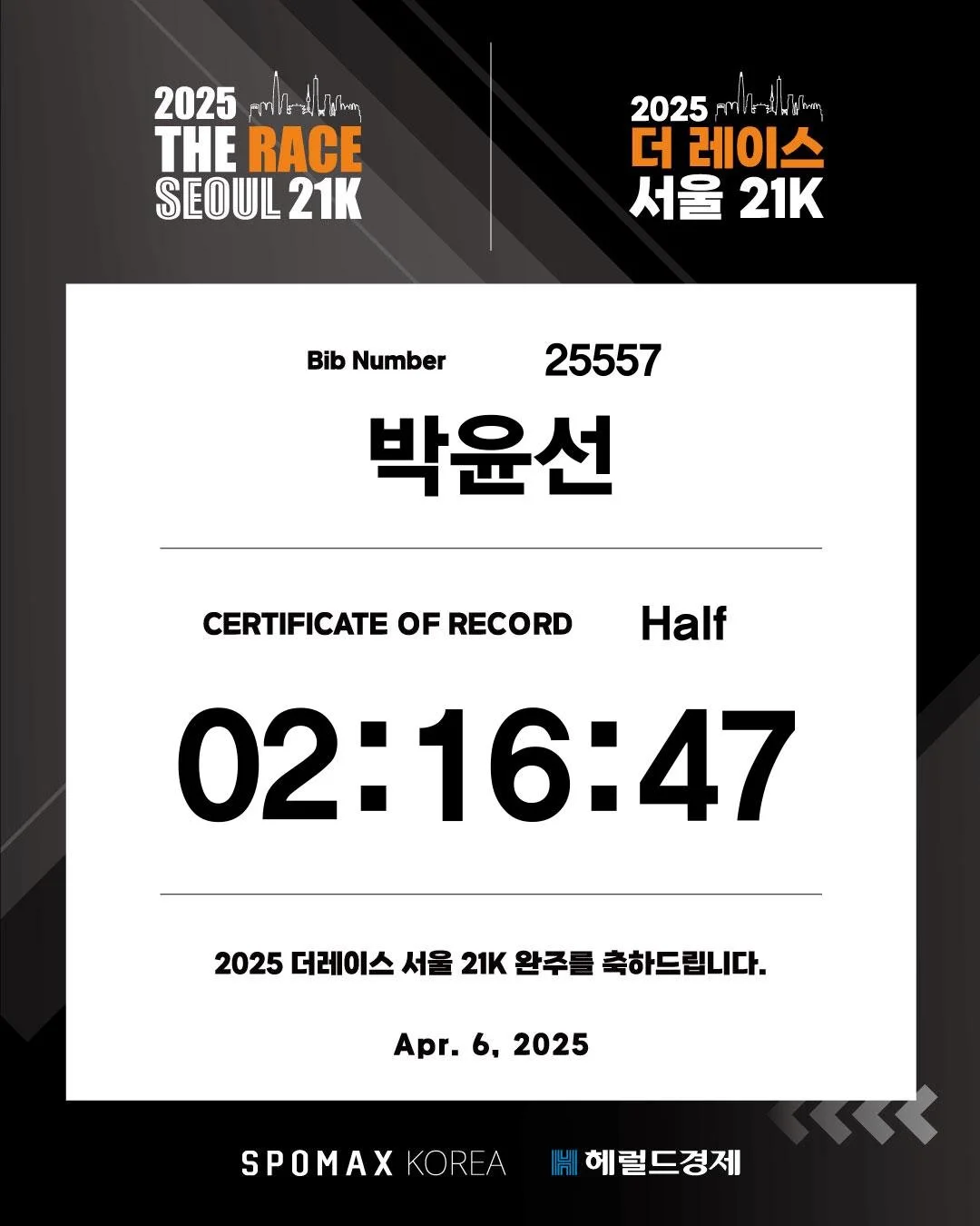 Casual small talk with strangers isn’t very common in Korean culture, but I couldn’t just pass by without saying something. And during a race, I figured we were all runners together, which gave me a small excuse to speak. As we gently passed him, I said, “You’re really amazing, sir.” He smiled and replied, “Thank you, I’m seventy-three.” It seemed like he, too, was proud of himself for still being out there, running strong after all these years. He looked healthy and confident, and just seeing him made me happy.